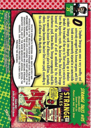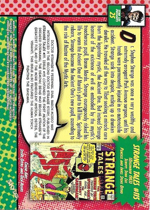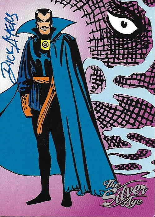 Number: 25 Name: Dr. Strange 2nd Name: The Silver Age Type: Trading Card Series: Stan Lee Presents Date: 1998 Artist: Dick Ayers Manufacturer: Fleer/Sky Box Other Characters: None Description: This is the Stan Lee Presents Silver Age card featuring Dr. Strange. this cards signed by Dick Ayers