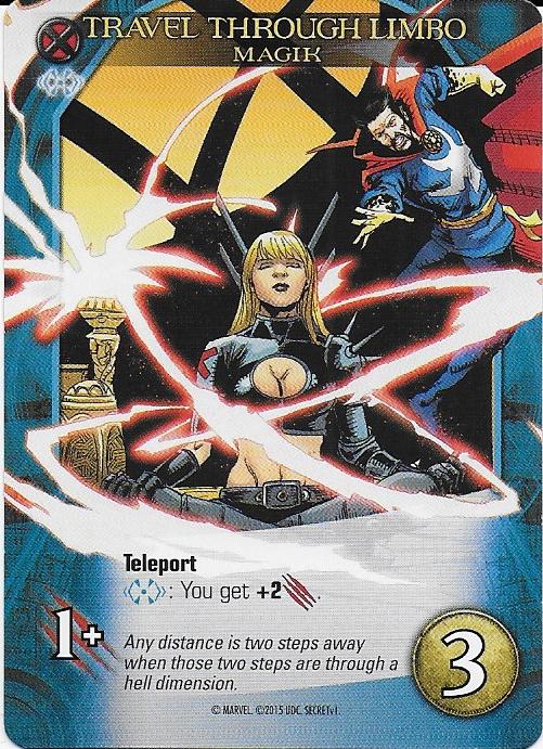 Number: None Name: Travel Through Limbo 2nd Name: Magik Type: Marvel Legendary Card Game Series: Legendary Date: 2015 Artist: Unk Manufacturer: Upper Deck Other Characters: Black Swan? Description: This is a teleport card for the Marvel Legendary card game.