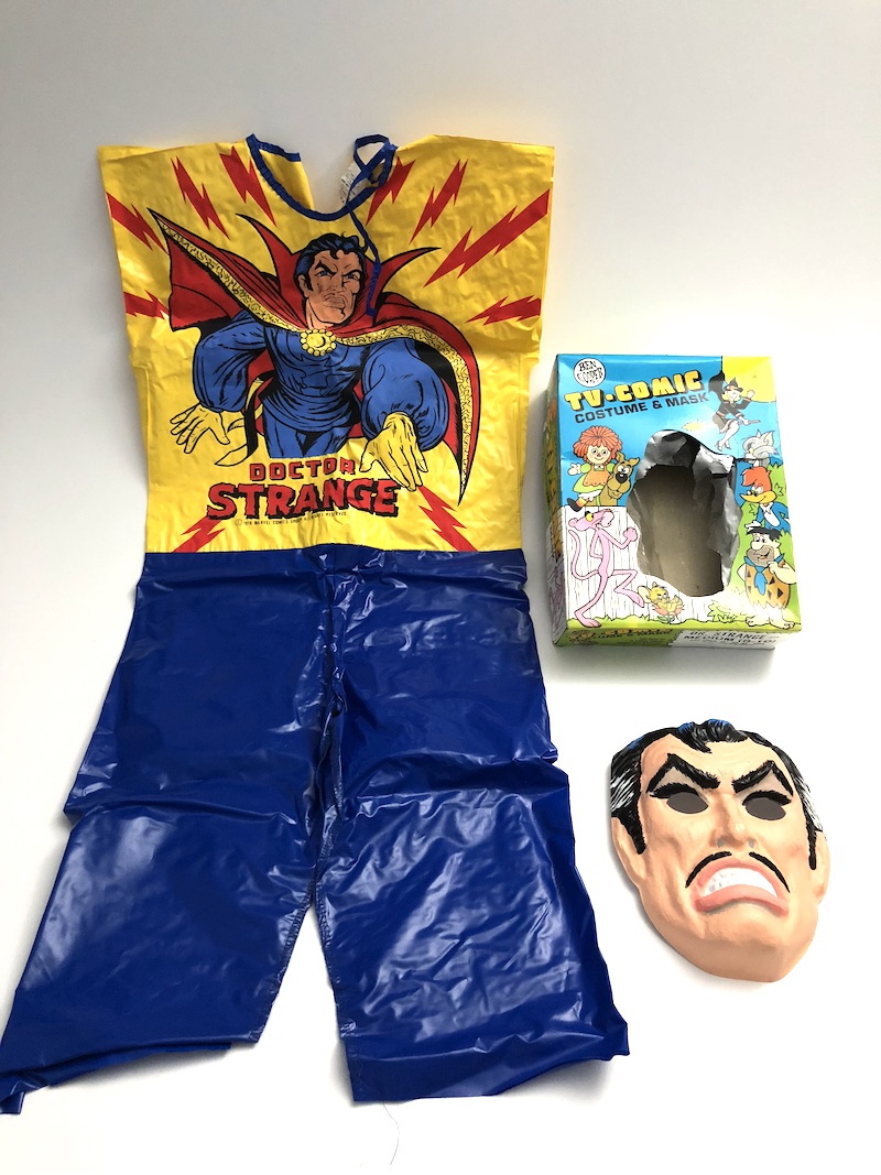 Item: Ben Cooper Dr. Strange Halloween Costume Date: 1978 Type: Costume Size: 8 1/4" x 11" x 2 3/4" Company: Ben Cooper, Inc. Description: This is the Ben Cooper Dr. Strange Halloween costume. The one in the Archive is size medium fitting a child 47" to 52" tall.