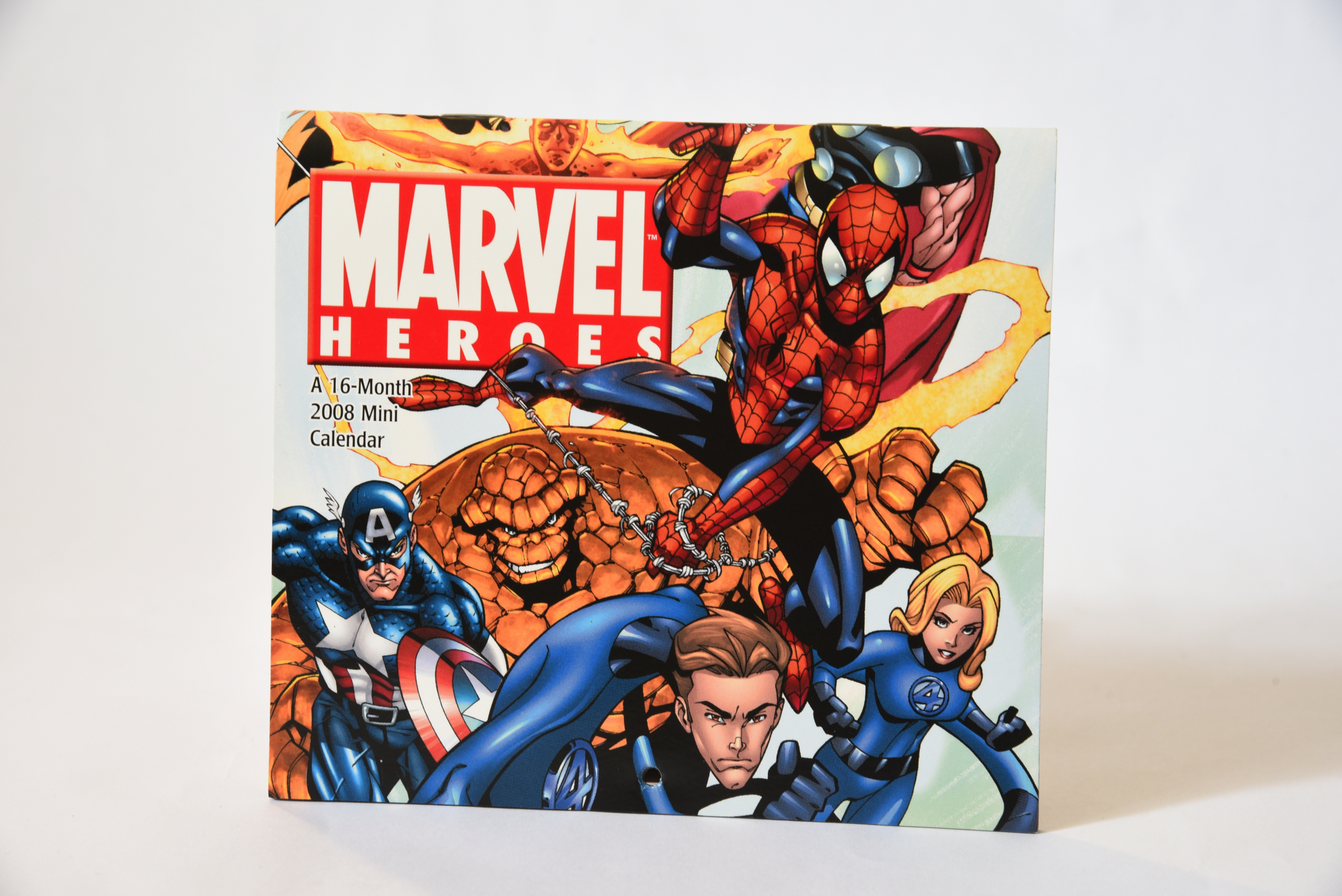 Item: Marvel Heroes 16 Month Mini Calendar Date: 2008 Type: Calendar Size: 5 1/4 x 5 3/4 Company: MeadWestvaco Description: This is a Marvel 16 month mini calendar. All the images appear to be reprints of posters and various other art. The Doctor can be found in the pictures for June and August.