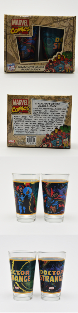 Description:      This is a pair of Dr. Strange glass cups produced by Icup, Inc. Each cup features a different Dr. Strange image.