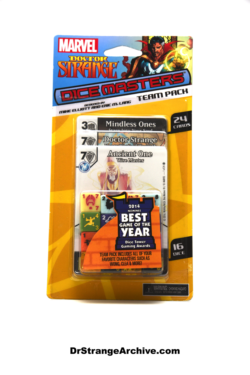 Item: Doctor Strange Dice Masters Date: 2016 Type: Game Size: 4 x 7.5 Company: WizKids/NECA, LLC Description: This is a Dice Masters team pack with 24 cards and 16 dice.