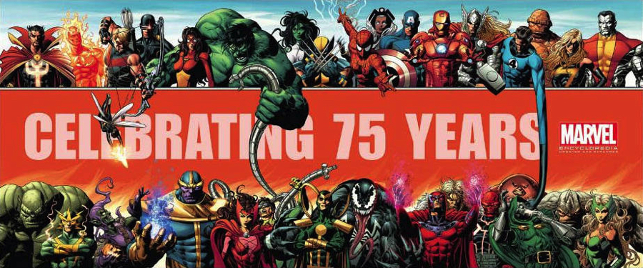 Title: Marvel 75th Anniversary Poser Artist: Mike Deodato Jr Date: 2014 Type: Poster Size: 60" x 25" Other Characters: Many Manufacturer: Unk Description: This is an oversized vinyl poster created for DK Publishing's Marvel Encyclopedia Updated and Expanded 3rd Edition. Dr. Strange is in the top left corner. This is a stock image because the poster is to big for me to photograph.