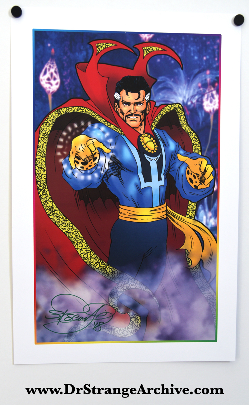 Title: None Artist: Skseut? Date: Unk Type: Print Size: 11" x 17" Other Characters: None Manufacturer: None Description: This is a vibrantly colored Dr. Strange in his classic costume. I had this signed at the 2018 Indiana Comic Con.