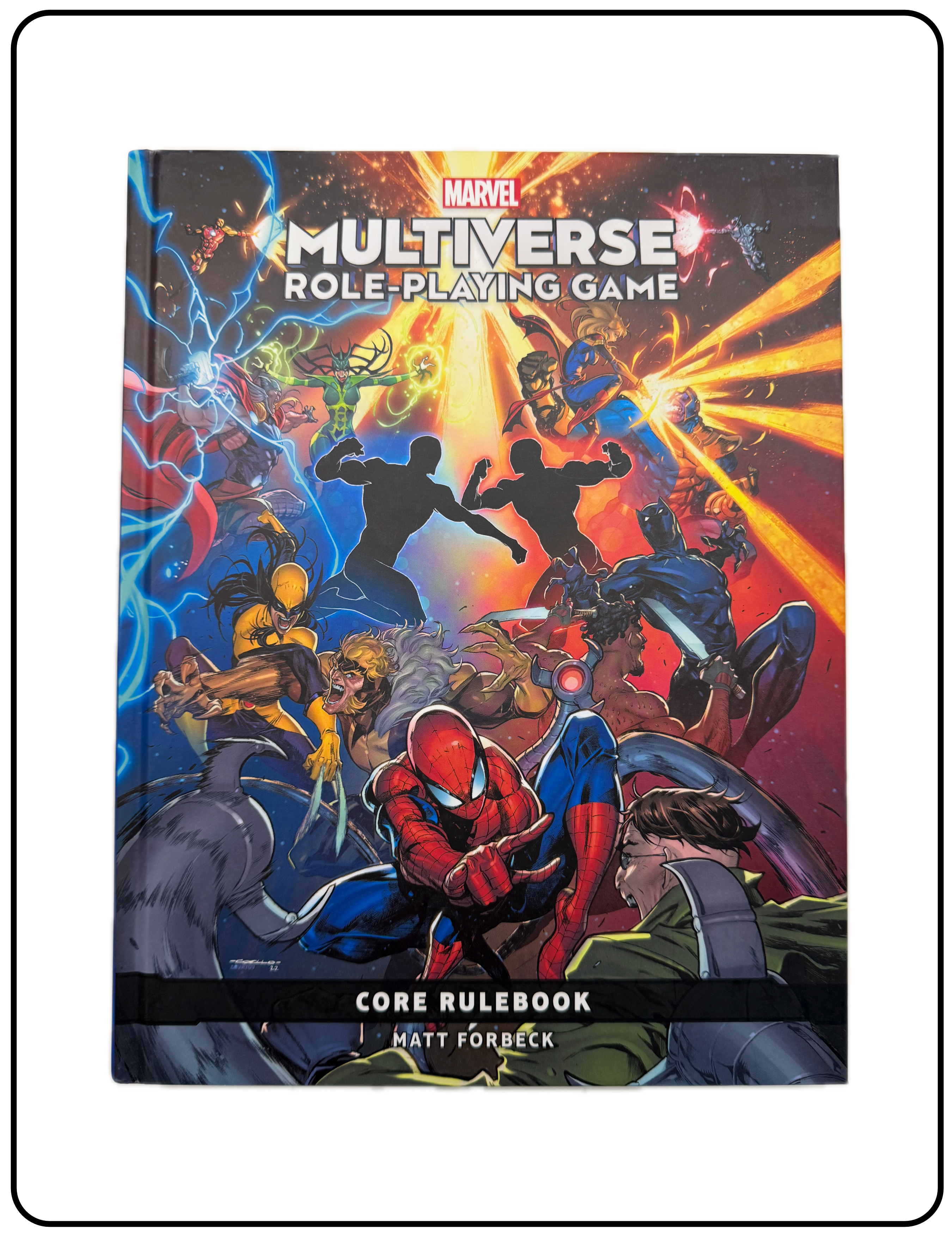 Name: Marvel Multiverse Role-playing Game Core Rulebook Company: Marvel Worldwide, Inc. Type: Rule Book Year: 2023 Catalog Number: 07:03:12:0003:C21 Main Category: Games Sub Category: Role-playing Games Secondary Category: Books Details: This is the 320 page core rulebook by Matt Forebeck for the Marvel Multiverse Role-playing game introduced in 2023. Dr. Strange appears on numerous pages throughout the book. His character sheet is on page 162 and has a rank of 6 (cosmic).