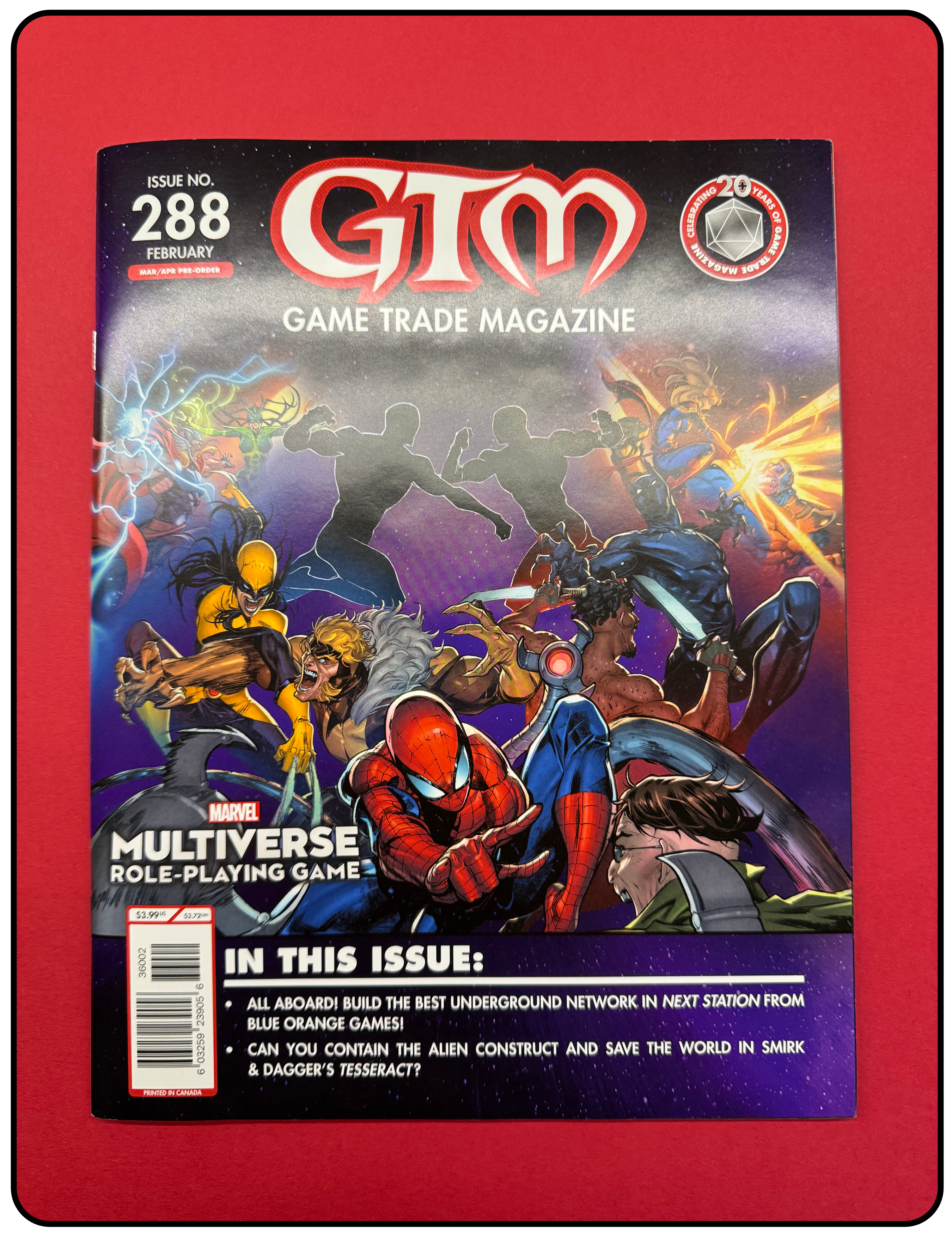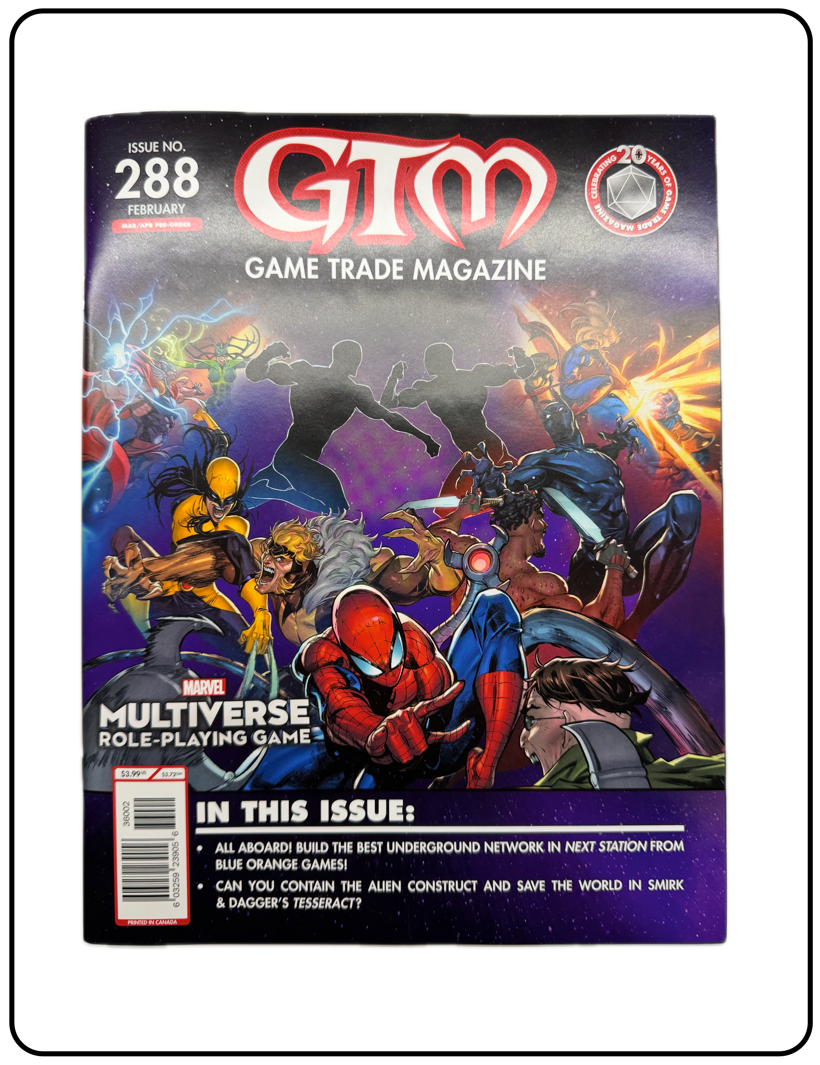 Name: Game Trade Magazine #288 Company: Alliance Game Distributors Type: Misc Year: 2024 Catalog Number: 07:03:11:0007:C21 Main Category: Games Sub Category: Role-playing Games Secondary Category: Magazines Details: This issue of Game Trade Magazine contains an article about the Marvel Multiverse Role-playing Game. Dr. Strange appears in one of the images.