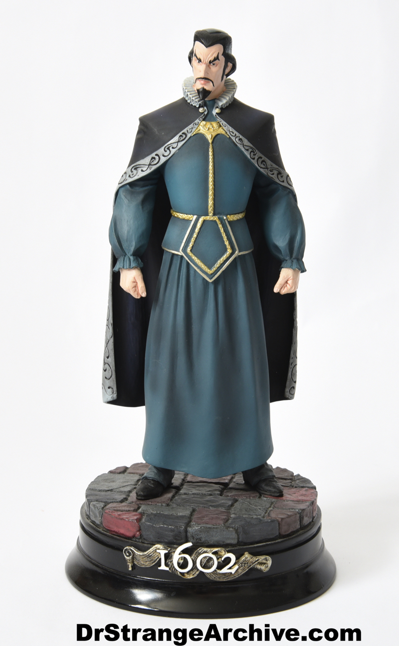 Name: Doctor Strange 1602 Artist: Andy Bergholtz Date: 2004 Size: 9 1/4 x 4 3/4 Company: Diamond Select Toys Description: This is a limited hand painted Doctor Strange statue from the 1602 mini series comic books. This statue is 891 of 2003. Another version limited to 1000 statues was also produced and is in the collection.